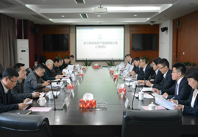 2016年11月25日,國貿集團樓晶董事長、孫建華總裁、藍翔副總裁攜集團組織(人力資源)部、辦公室、戰略與法務風控部、投資與資產經營部、金融產業部等相關部門負責人,赴浙商資產調研。
